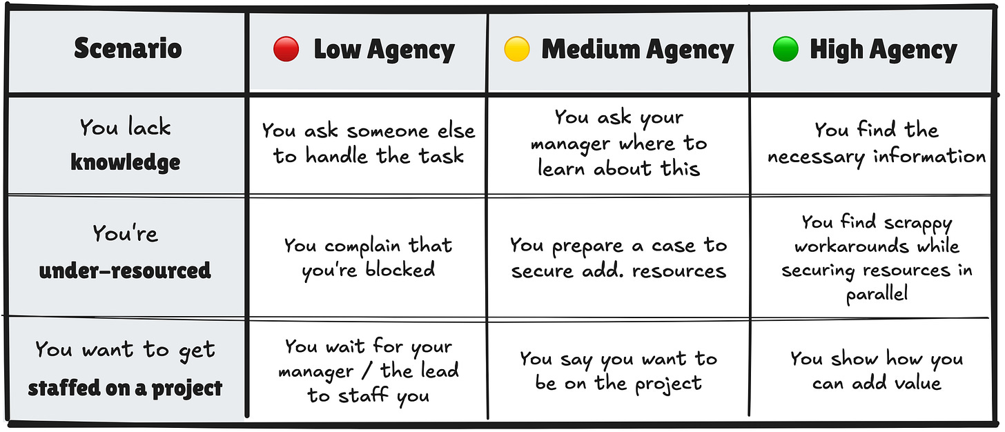 Every manager wants more high-agency people on their team, and everyone that wants to make an impact and get ahead in their career should strive to increase their agency.