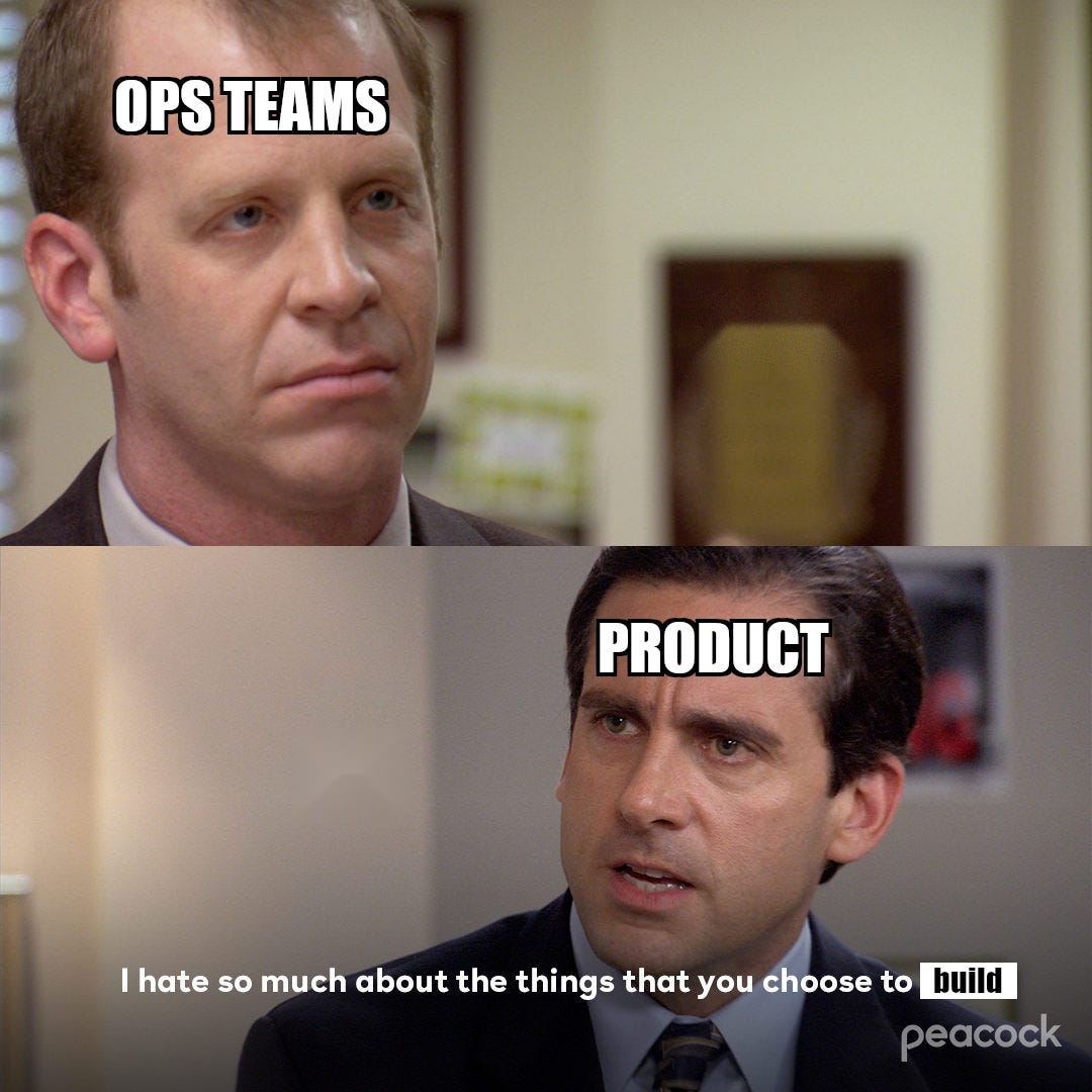 The best Ops managers, however, didn’t just throw up their hands in defeat and blamed Product. Instead, they implemented hacky band-aid solutions; for example, to address the pain points above, people built: