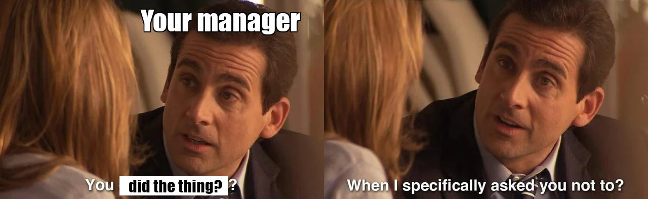 Of course, whether you can get away with this heavily depends on the culture of your company. In some organizations, “just doing things” can get you in trouble, and you definitely shouldn’t go against direct guidance from your manager.